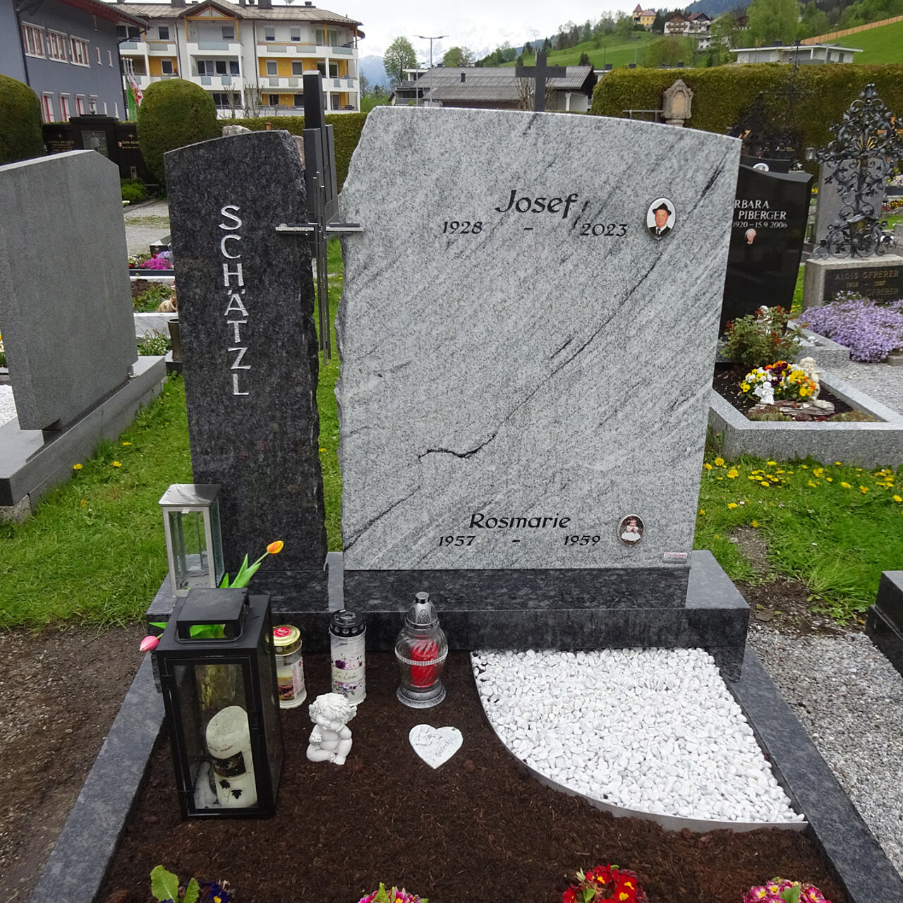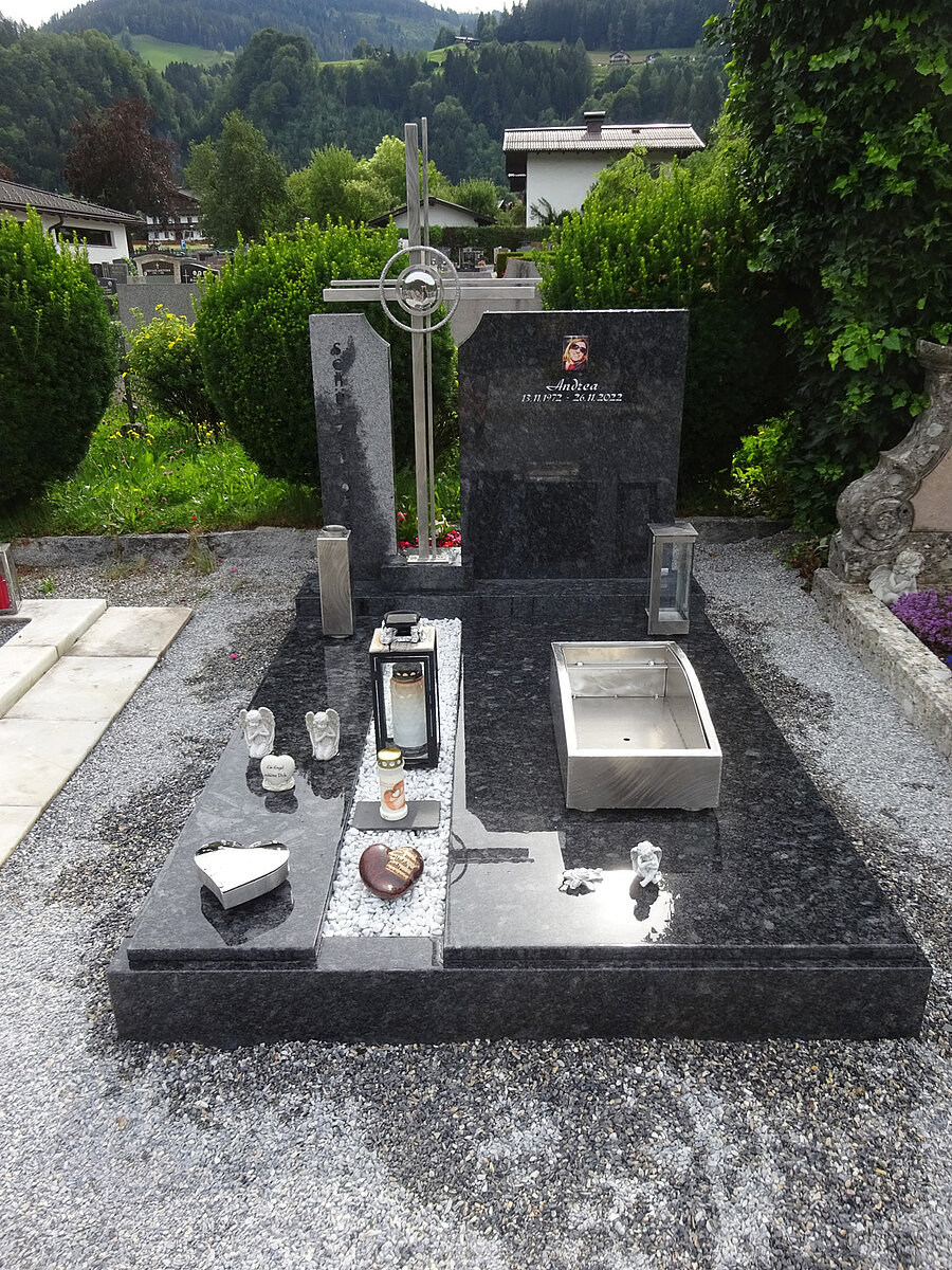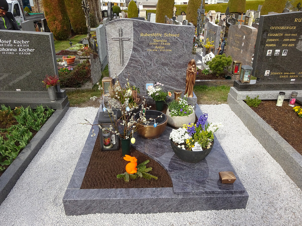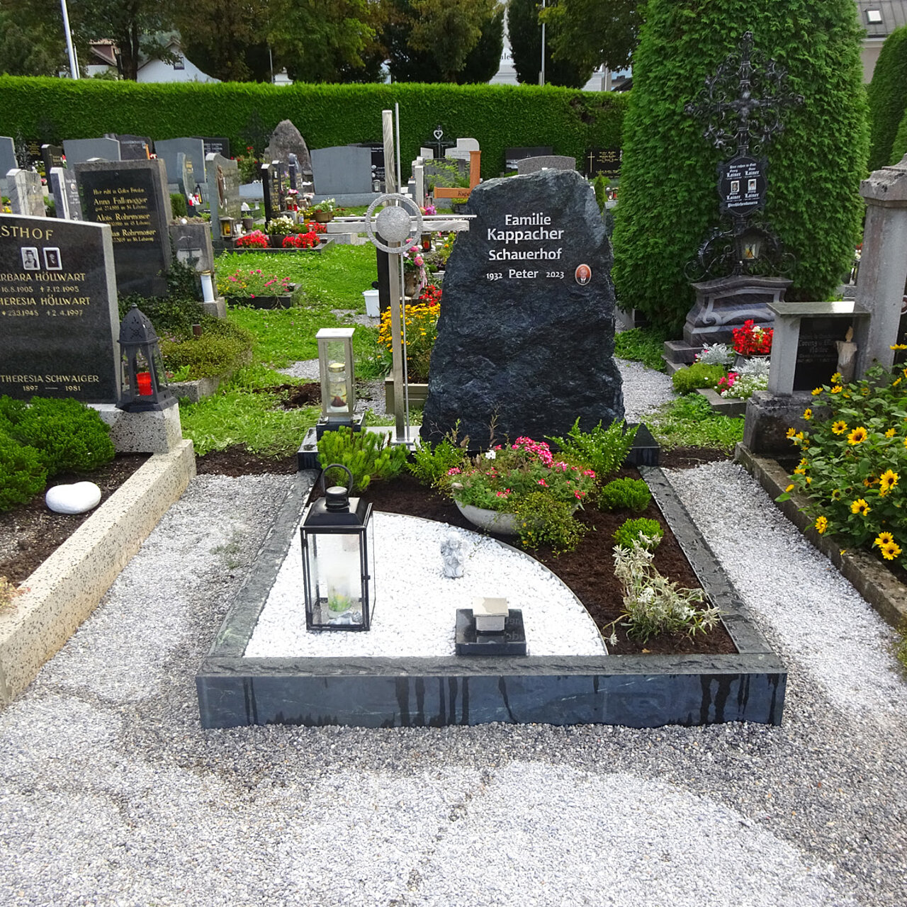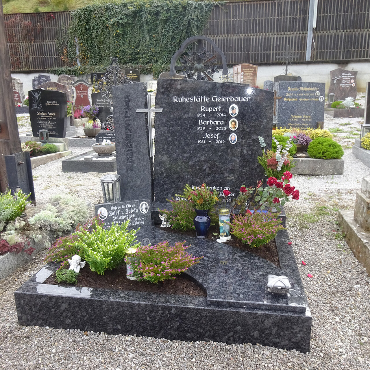 Gerade bei großen Grabflächen mit einer Breite von 1,80 bis 2,00 m wird die Bodengestaltung besonders wichtig. Der Kreativität sind hier kaum Grenzen gesetzt. Ob mehrteilig oder einteilig, mit Kreuzen oder Figuren bestückt, doppelt breite Grabanlagen bieten genügend Platz für alle Wünsche.