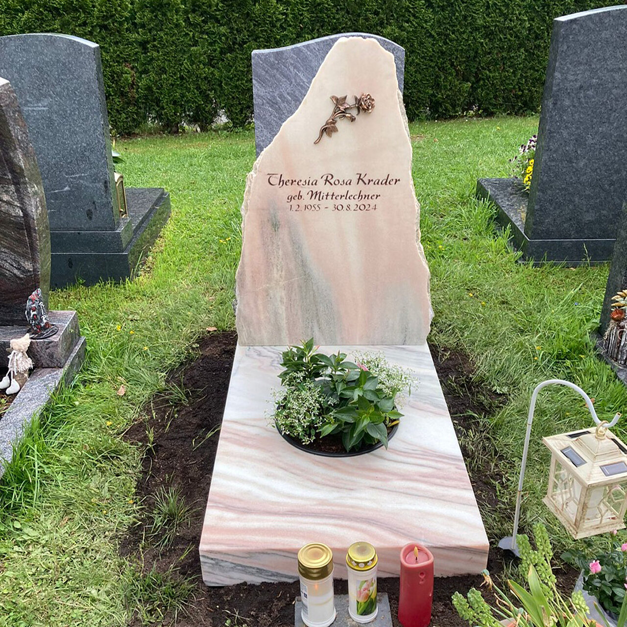 Für ein Urnengrab haben Sie die Wahl von barock bis modern und vielen Natursteinmaterialien. Unsere Urnengräber nach den Maßvorgaben des jeweiligen Friedhofs stehen den Erdgräbern in Form und Ausführung in nichts nach.